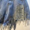 • 2022 Summer New Hole High Waist Rhinestone Tassel Chain Slim Straight Denim Shorts Women
