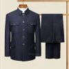 Chinese Tunic Suit Spring Autumn Elderly Latest Coat Pant Designs Two Piece Mens Formal Wear Father Clothes Blue Double Layer