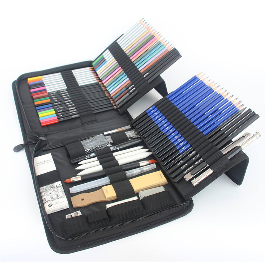 1x Marker pencil. 1x Water brush pen, 1x Brush, 1x Rubber pen, 1x Pencils storage bag.