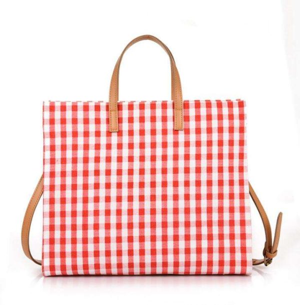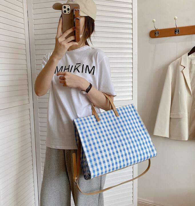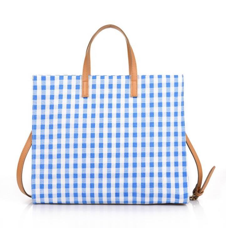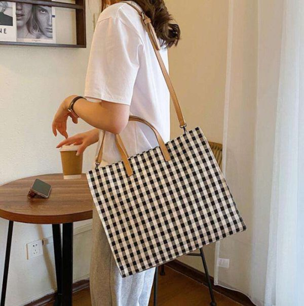 Name: Fashion Women Lady Cute Canvas Handbag Grid Pattern Sublimation Bag Canvas Tote
